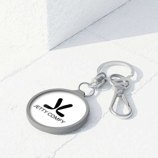 • Jetty Comfy™ Acrylic Logo White Keychain – Compact, Sleek & Pocket-Friendly