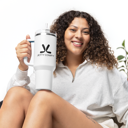 Jetty Comfy™ Signature Logo 40oz White Tumbler – Insulated, BPA-Free & Handle-Ready